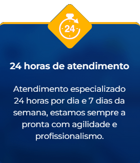Atendimento especializado 24 horas por dia e 7 dias da semana, estamos sempre a pronta com agilidade e profissionalismo.